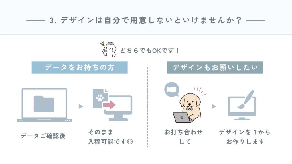 すでにロゴやデザインデータをお持ちの方はそのまま入稿できますし、