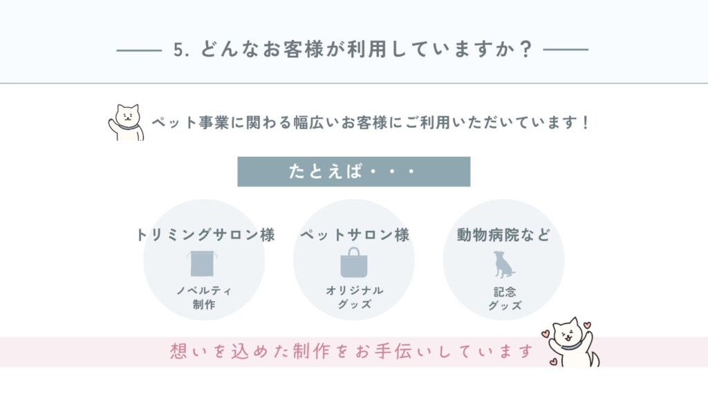 A. ペット事業に関わる幅広いお客様にご利用いただいています!