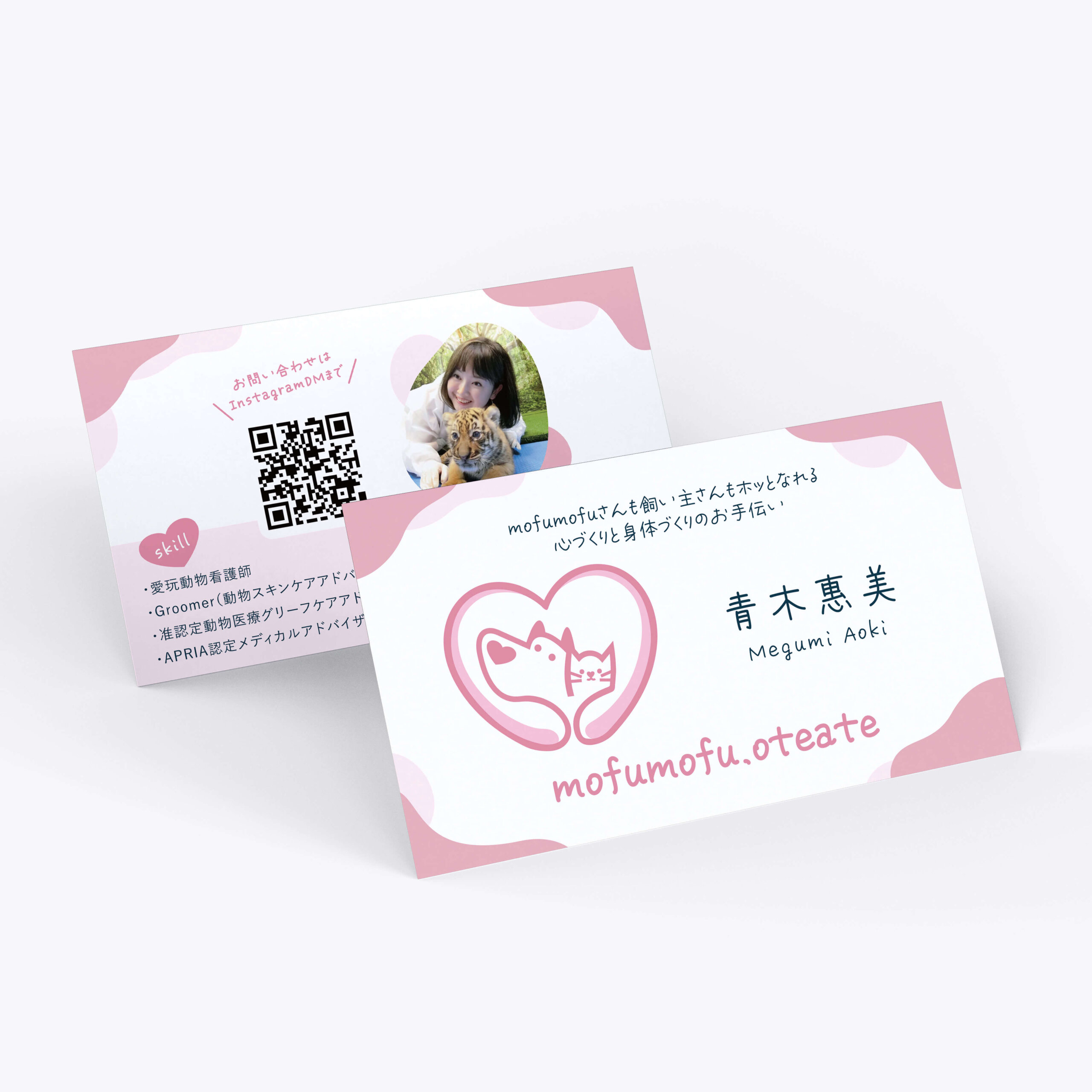 ロゴの優しい印象をそのまま名刺に詰め込み、さまざまな活動を展開しているクライアント様の活動や資格をコンパクトに見える化できるデザインをご提案しています。